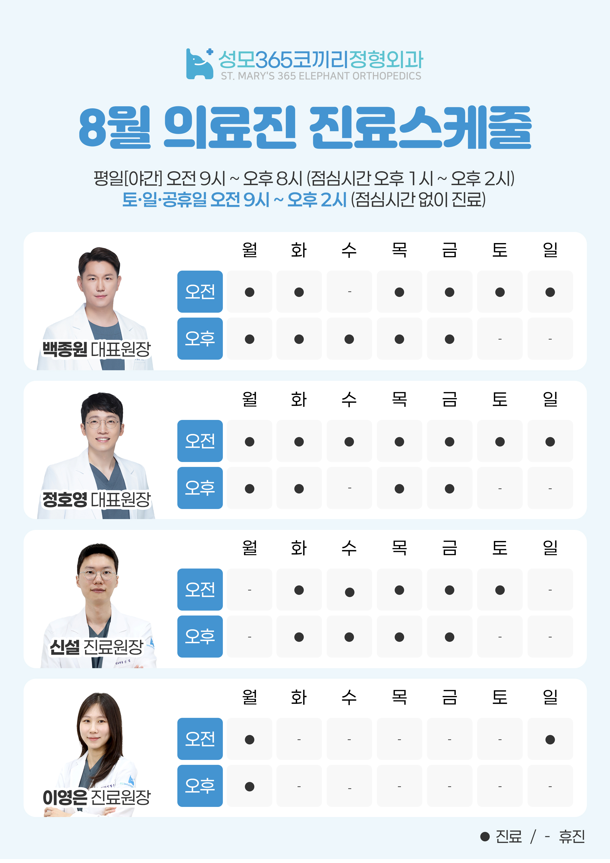 - ※ 토·일·공휴일은 점심시간 없이 진료합니다.